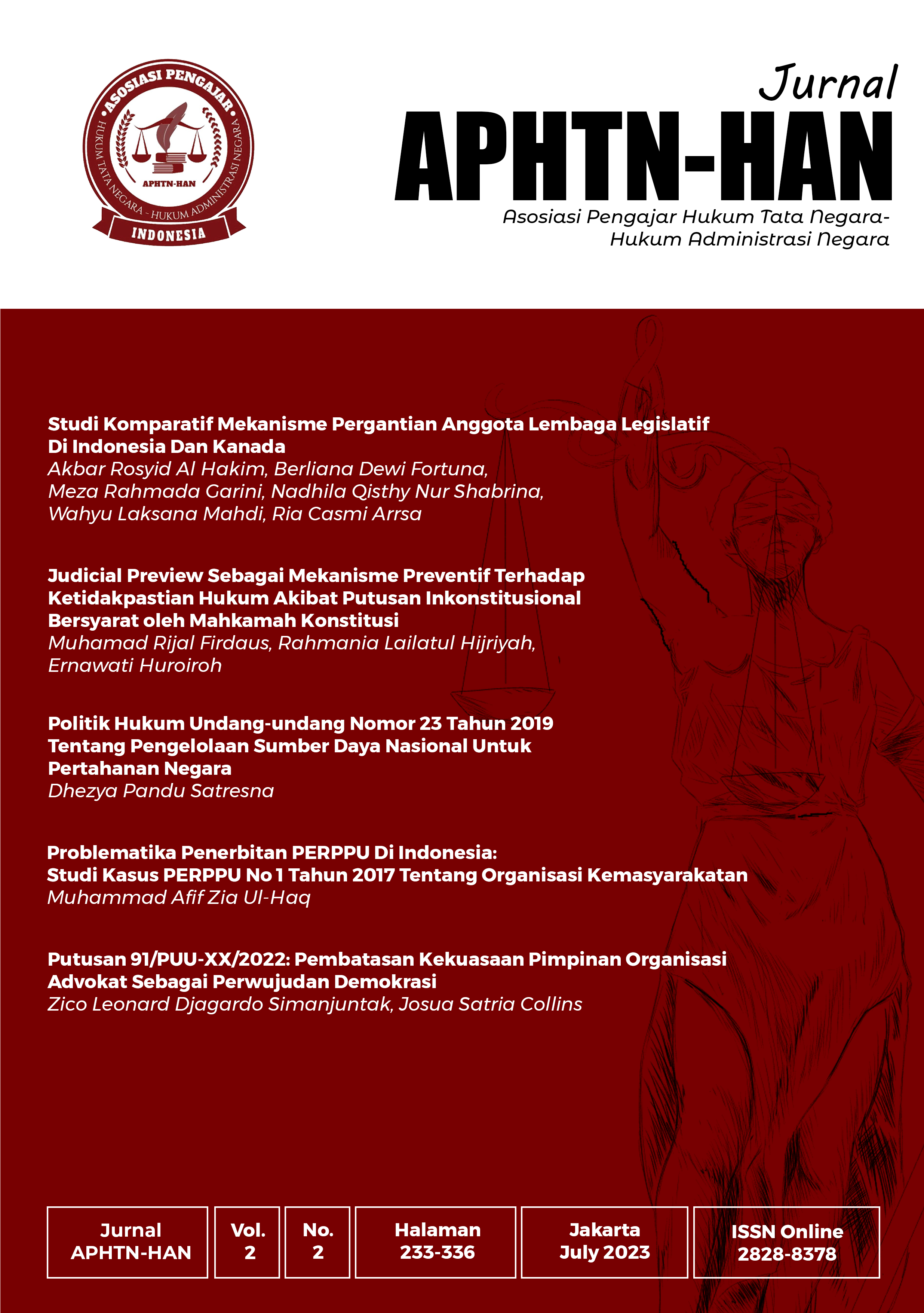 A Comparative Study of The Mechanism for Replacing Members of The Legislature In Indonesia and Canada